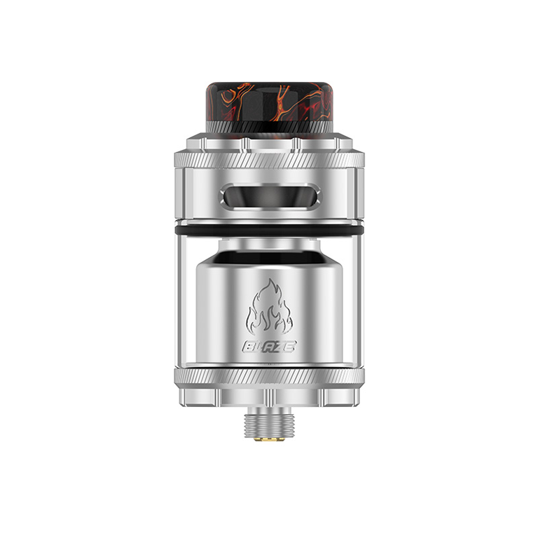 ThunderHead Creations x Mike Vapes Blaze RTA has a base diameter of 24mm and tapers out to 26mm. It has a 2ml capacity with the straight glass but there is an extra 5.5ml bubble glass provided. Constructed from stainless steel, it is refillable via a top filling system. Blaze RTA is an innovative dual coil tank designed by US reviewer Mike Vapes. It comes with unique ā€œWOWā€ postless build deck and double 270° surrounding honeycomb airflow, which brings you excellent flavor and airflow. With a top to bottom airflow design it makes the tank very leak-proof and easy for daily use.